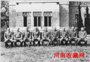 田中久一私人影集中还有一张合影照尤为引人关注:在中国南京当年的日本“支那派遣军总司令部”草坪上,九位面露凶光的日本军人端坐一排:他们是日本支那派遣军总司令畑俊六,以及冈村宁次、喜多、下村、横山、上月、松井石根、田中久一、下山。拍摄这张合影照片时,九人中除了畑俊六和冈村宁次为大将外,其余均为中将,而当时日本的最高军衔就是大将。这些人正是侵华日军最高指挥官。
