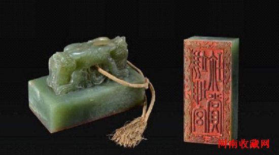 就制作宝玺的材质而言,清朝早中期那种较好的印材已经不太多见,取而代之的是一些不太贵重的材料,岫岩玉就是其中的一种。从现存实物观察,岫岩玉在清代同治、光绪年同进入宝玺制作领域,而用的最多的人即是慈禧皇太后。在慈禧皇太后的宝玺中有相当一批是岫岩玉的,这批宝玺绝大部分是宫殿玺,玺文都是在宫殿名之后加“精鉴玺”、“御赏”、“珍赏”、“御笔”等字样,且成组出现,同一玺文一般有大长方形、小长方形、大方形、小方形四种规格,每种规格各有两方,其中大长方形玺都是以玺文为中心,玺文周边一方刻有龙纹戏珠图案,另一方则刻飞凤和竹叶纹,正好配成一对,反映出慈禧皇太后作为一名女性统治者特殊的心理状态。这批岫岩玉宝玺是在很短的时间内成批量制作的,完成後一直放在宫中,很少使用。