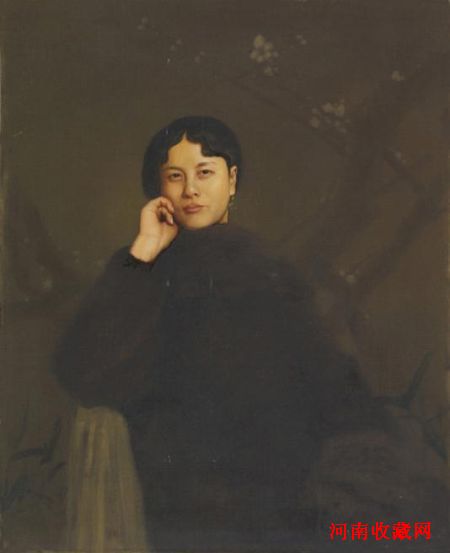冷军1992年作《女子肖像》,88×70cm,布面油画。冷军的绘画风格常被称为超写实主义,在这一点上,冷军却觉得不尽然。他是按照对象的生成过程“造”出来的,造化的是自然的生命,心源是自我心源的展示。作画者内心需要便是此时的心境和意境,便是作中的意境也有了差异,所以即便是同一题材在不同画家笔下都会迥异各趣。冷军对传统的有着深刻透彻的理解,这从他后来回归传统的作品中体现出来。这幅作品是画家在1992年创作的,画面中的女子是画家的友人,画家以细腻的笔触刻画了一个宁静沉思中的女子。女子被安置在梅花背景的衬托之下,画家运用高超的笔法,对人物着装、姿态、面部表情进行精致地刻画,神态的传神表达,这种有意无意间构造的平静、祥和的画面,无不透露出画家对经典、传统的古典意蕴的欣赏和对友人高洁的品格的寄寓。