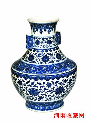 清乾隆 青花缠枝花卉海浪纹贯耳大尊“大清乾隆年制”款