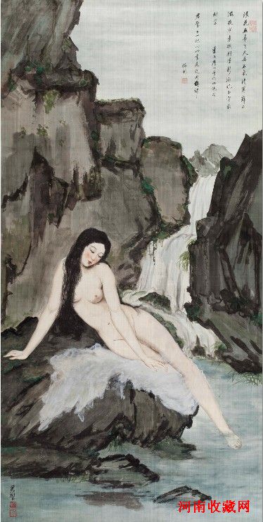 题跋:浪花无蒂自天垂,石气清寒藓不滋,夜半素娥初堕影,冰肌玉骨最相宜 曩在庐山曾作此绝句,君壁十一妹以此画属题因为录之 精卫 钤印:精卫 墨意静有琴声存