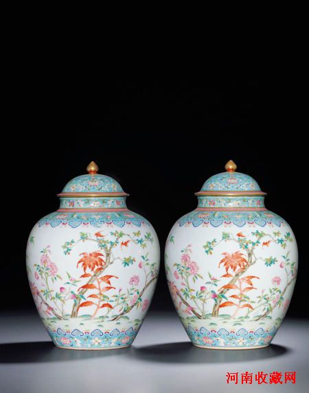 清道光 粉彩丽景雁来红盖罐一对 678万的成交