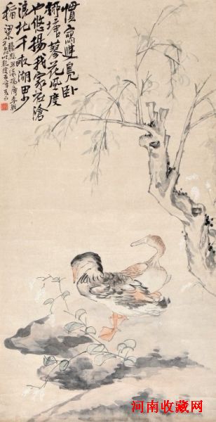 李 鱓(清) 柳溏双鸭图 129×66cm 约7.8平尺