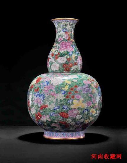 清乾隆粉彩御制万花献瑞大葫芦瓶