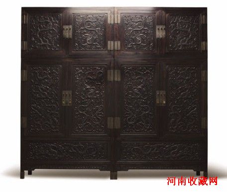 清乾隆紫檀高浮雕九龙西番莲纹顶箱式大四件柜