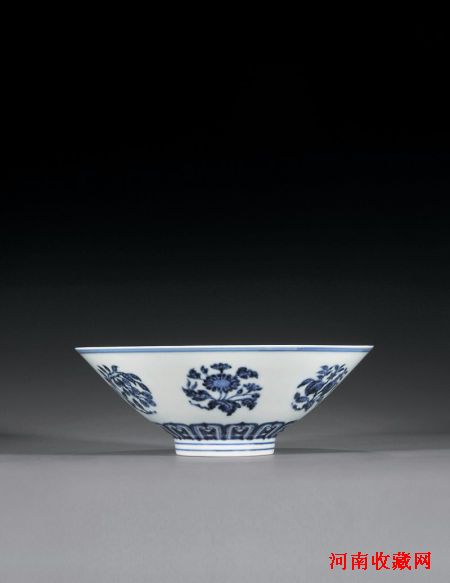 明宣德 青花折枝花果纹斗笠碗