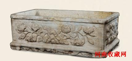 2013西泠春拍 清·汉白玉四面花卉长方形石盆 88×56×32cm