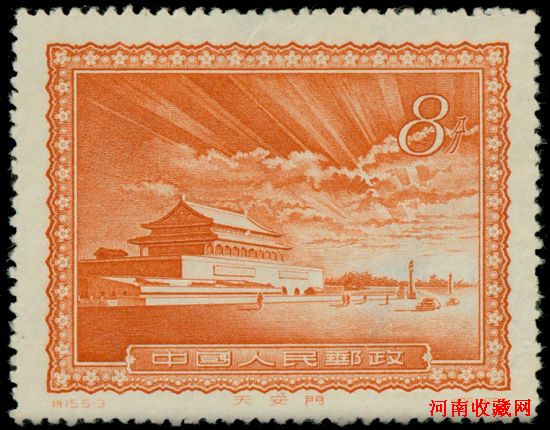 1956年特15首都名胜(5-3)天安门放光芒撤销发行票新一枚