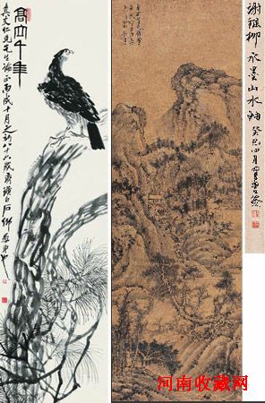 齐白石的《高立千年》与谢稚柳的《松壑鸣泉》