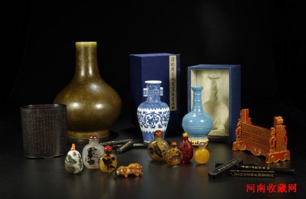 本次敬修堂提供的瓷器亦是瓷中精品。清乾隆·炉钧釉弦纹瓶圆唇侈口,长颈圆腹,底部有圈足。自瓶口、颈部、腹身皆阳起多条弦纹。通体施炉钧釉,形成长短不一的垂流条纹,有的弯曲,有的垂直,如同五彩缤纷的孔雀尾羽,又似一汪湖水,清波荡漾,极为精美。原配底座。底座雕刻精美,镂空染色加彩,中心螭龙纹团卷,四周开光。皮壳光亮润泽,搭配甚佳。清乾隆·青花缠枝纹贯耳瓶通体施白釉,釉质莹润,颈部绘青花海水纹,正中饰云雷纹,颈腹交接处绘蕉叶纹,底足亦为蕉叶纹。腹部绘青花缠枝纹,底落“大清乾隆年制”六字青花篆书款。清光绪·茶叶末釉荸荠瓶直口长颈,扁圆腹,外侈圈足,器形规正,削足考究,足端露胎。通体施茶叶末釉,色泽暗黄,片片点点,有如鳝鱼外皮,又似斑驳古铜,极具趣味。清乾隆·矾红描金夔龙如意纹插屏座烧造精良,通体矾红描金装饰。正中有如意云头带,两侧则有杂宝盘肠结。架柱两侧镂空圆雕螭龙相对,身躯流畅富有动感。红金搭配,高贵华美。