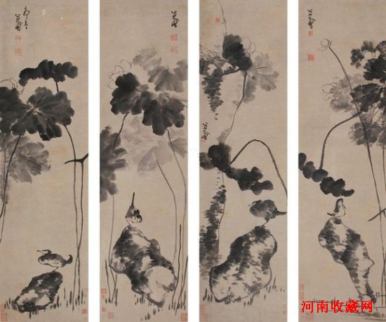 八大山人 1699年作 花鸟 四屏 纸本水墨 成交价6608万