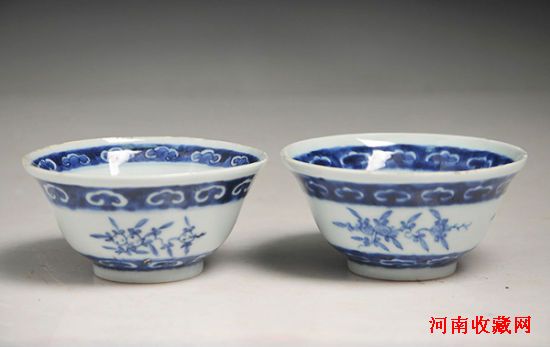 图4 清中期 青花折枝花果碗一对 (一元起拍)