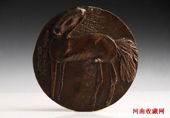 此作品呈现出的是一只正青春对世界充满探知欲的马驹,活泼可爱,在画面处理上更是根据圆形盘面将马头顺势一倾,更显生动。田世信作为中国雕塑界先驱性人物其作品深得业界认可,其著名的《拓荒牛》更是因为在内在精神内涵上与深圳这座中国读一无二的城市完美融合而必然载入史册,其作品具有很高的艺术价值之外,历史文化价值也不可忽视。