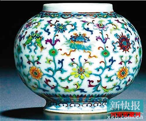 清乾隆斗彩莲托八吉祥纹圆罐 今年5月底春拍中成交价315万港元(约合人民币248.4万元),而在2月底在伦敦的一场小拍中的价格只有32000英镑(约合人民币30.6万元)。