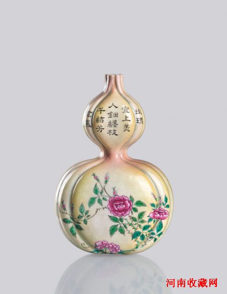 清乾隆粉彩玫瑰御题诗文葫芦形壁瓶