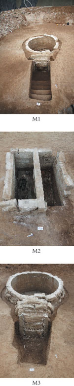 M3结构与M1相似,为穹窿顶石室墓,墓向197°。由墓道、甬道、墓室三部分组成。墓室平面为圆形,直壁,平底。石块内侧均经过细致的加工呈弧形,使砌筑的墓室壁为正圆形,石块之间用白灰粘接,墓室内径3.7米,残存高度为3.9米,墓室壁下部2米为直行,其上内收起券至穹窿顶,墓室底部用大小不等的石板铺砌并延伸至墓的四壁下,石板厚度为0.1米,在距墓室内砌出棺床。该墓被破坏严重,墓室内堆积均为扰土,内含有大量的碎石片及碎骨。
