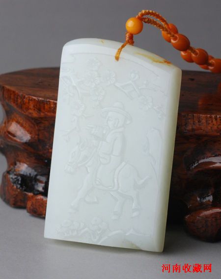 图7 【现代 苏工洒金皮精雕和田白玉籽料踏雪寻梅图大牌】