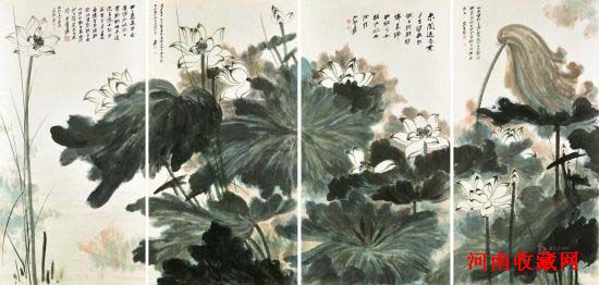 3.香港佳士得张大千《荷堵野趣四屏通景》