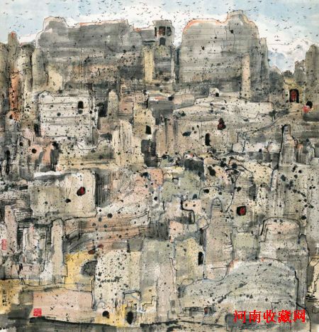 吴冠中《交河故城》,1981年作,设色纸本 镜框,106 x 102 公分