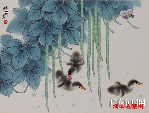 “崇正雅集”第一期艺术品拍卖会部分精品:方楚雄 《豆堋小鸭》 纸本镜片 尺寸:34*45.5