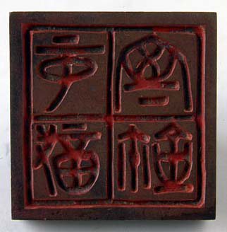 战国(公元前480—前222年) 二十世纪四十年代长沙出土 通高1.5厘米、印面长宽各2厘米 印有官印和私印,私印是个人的印信,官印则是政府部门的印章,“中戠(zhí)室鉨(xǐ)”属于官印,为管理纺织的机构,《汉书•百官功卿表》载:“少府、秦官……属官有……东织、西织……河平元年省东织,更名西织为织室”。 印为方形,有二层台,鼻纽,印面篆书四字,布局匀整,形体秀健。 此印表明战国时期的楚国已设有专门管理纺织的机构和官员。(现藏湖南省博物馆)