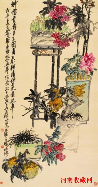 2013西泠秋拍 吴昌硕 岁朝清供图 设色纸本 立轴 1918年作 152×80.5cm 出版:《吴昌硕先生遗作集》,大东书局出版。 说明:吴璧城鉴藏。