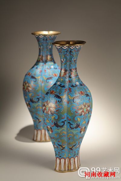 清乾隆 铜胎掐丝珐琅宝相花海棠式瓶一对 H36cm 估价:RMB80-100万 “乾隆年制”“则”款 法国Pierre Mercier收藏