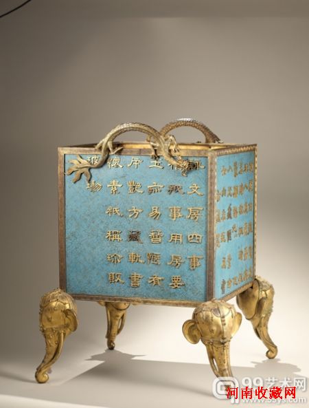 清中期 铜胎掐丝珐琅象足双龙耳诗文大方炉 H66 W51cm 估价:RMB100-150万 法国Pierre Mercier收藏