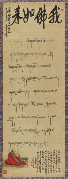 乙丑(1925年),九世班禅额尔德尼活佛南游来沪。钱化佛绘《我佛如来》一帧,灿烂庄严,令人见之肃然起敬。持以奉之活佛,活佛甚喜,旋以哈达并亲书经文以赠,并王震书“我佛如来”,遂成佛事与文坛活动之一段佳话。