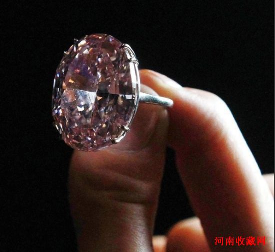 当地时间2013年10月24日,英国伦敦,模特展示苏富比“粉红星”的钻石。苏富比拍卖行将于11月13日,在瑞士日内瓦拍卖这颗59.6克拉、名为“粉红星”的粉钻,叫价6000万美元,这一拍卖叫价是有史以来经切割的宝石中最高的。