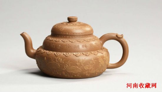 这件乾隆款浮雕装饰“莲花”宜兴陶壶估价65万-77万美元之间