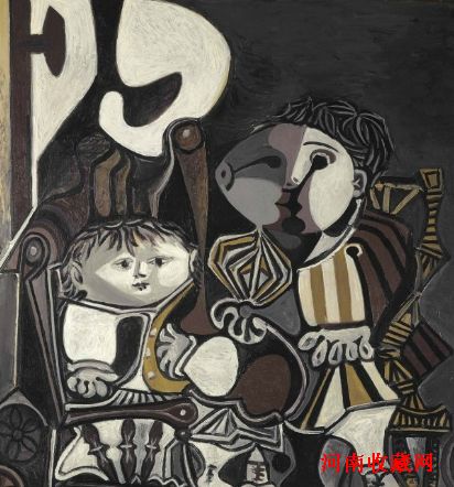 这件油画作品《两个小孩》创作于1950年,是毕加索风格成熟期典型的代表作,画面中的人物形象是其3岁的儿子克劳德和1岁的女儿帕洛玛。据资料介绍,从当年这件作品完成一直到毕加索去世后,都一直悬挂在毕加索工作室的显要位置,是毕加索本人非常心爱的作品。大家非常熟悉又闻名世界的那张“毕加索的和平鸽”,也就是在当年同一时期创作的。