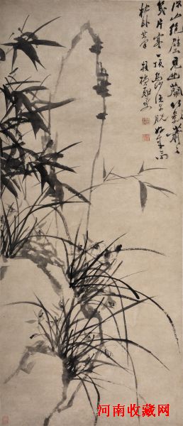 中鼎此幅郑燮《深山兰竹图》,纸本水墨立轴,尺寸为121×51厘米,约5.7平尺。三方钤印为“板桥郑燮”、“郑燮之印”“板桥”。它不仅体现了郑燮艺术的经典风貌,且品相上乘,殊为至爱。
