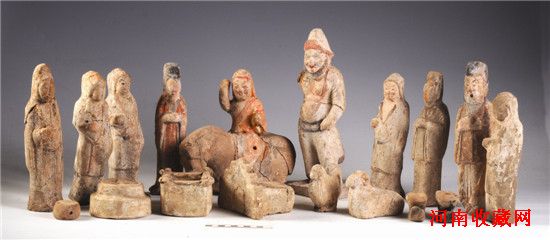 9座唐墓共出土器物126件(不含铜钱),质地有陶、瓷、铜、银、骨石蚌类。其中陶器有筒腹罐、塔式罐、灯、杯、鼓形器、灶、井、猪、狗、羊、侍女俑、男俑、骑马俑、天王俑、镇墓兽、砖志等,瓷器有盘、四系罐、盒,铜器有铜镜、铜钱(开元通宝)等,银器有钵、釜,骨石蚌器有墓志、骨簪、贝壳、料珠等。