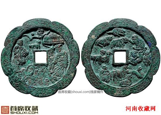古钱部分则从贝币、布币、刀币开始,赵国“五陉”背“十二朱”三孔布孤品,罗振玉旧藏,虽残有修,估价70-100万;楚国“视金一铢”铜钱牌为大名誉品,估价50-70万;汉钱四铢、四铢铜范,难得一见;五代十国楚马殷“天策府宝”非常珍稀,为古钱书籍《昭和泉谱》及《古货币价格图谱》书中原物,估价20万-40万。