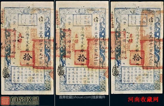 咸丰元宝宝泉当五百雕母 纸钞:袁世凯双狮共和样稿 一版壹万圆牧马