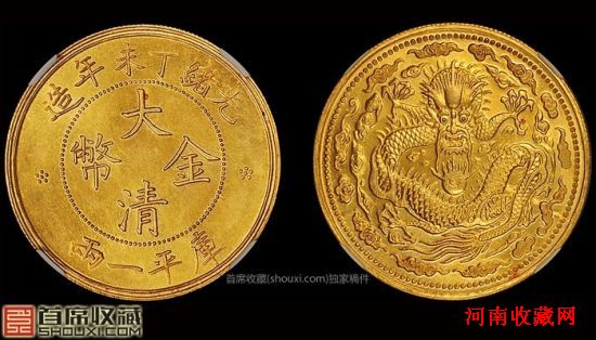 大清中央系中精品迭出,反龙壹圆样币裸币完全未使用,边齿锐利,品相完美。经PCGS鉴定SP-UNC长须龙壹圆样币,正面两旁花叶为粗花瓣边叶阴文,镜面版底精铸,此版所见甚少。NGC-MS64宣统二年水龙壹圆样币,五彩深打,版底完美。NGC-UNC光绪丁未大清金币一两为古德曼旧藏,非常难得。
