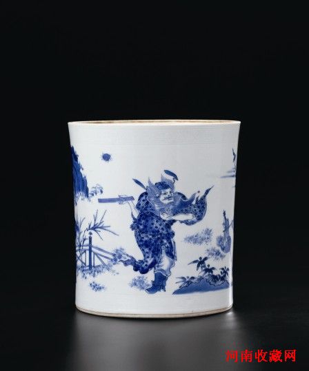 明崇祯 “青花钟馗抓鬼笔筒”H:20.3cm