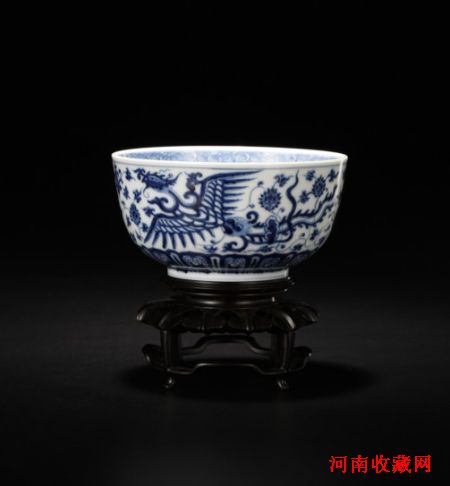 清康熙 青花凤穿花纹碗 D:13.6cm