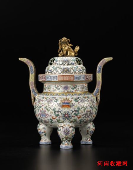 清乾隆 白地粉彩缠枝莲托八宝纹熏炉 H:32cm