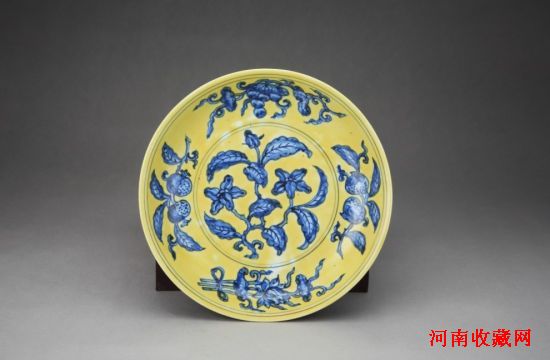 明正德“黄釉青花折枝花果纹盘” D:25.4cm