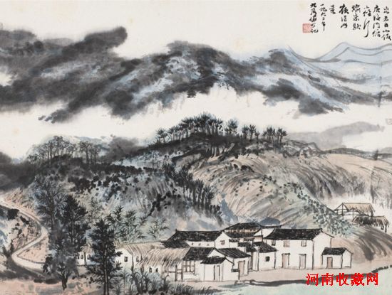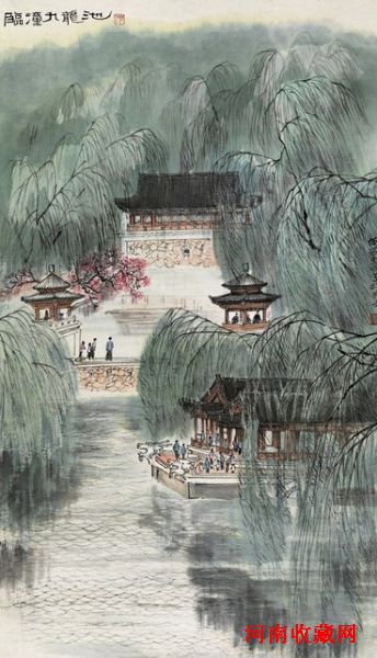 何海霞作品以山水居多,《临潼九龙池》一展风情人物之貌,早在八十年代便参加荣宝斋(香港)有限公司周年纪念展,亦属难得。