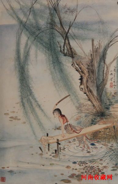 胡也佛《浣衣图》 设色纸本 镜心40×26cm