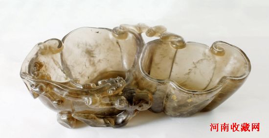 茶晶螭龙灵芝纹双联洗