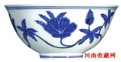 香港苏富比上拍的“明成化青花缠枝秋葵纹宫碗”。