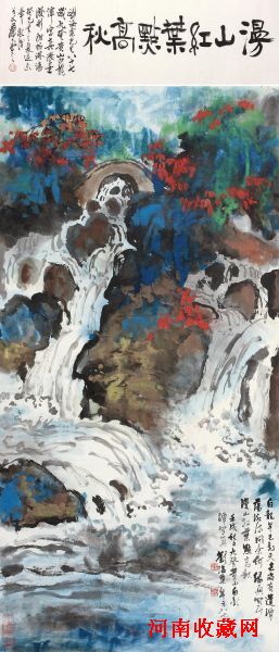 刘海粟 漫山红叶点高秋 纸本设色 立轴 135×67cm。备注:萧平题诗堂
