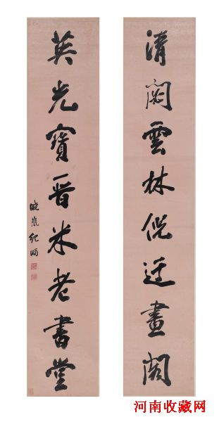 纪晓岚在书法上的造诣是相当精深的。清初书法,由于康熙、乾隆等人的倡导,书家大多受赵孟頫、董其昌的影响,纪晓岚也不例外。此幅行书对联书写流利、圆融,显得雍容华贵,书法大小相兼,收放结合,疏密得体,苍劲多姿,可以说是实用性和艺术性的完美结合。由此观之,纪晓岚不愧为清代书坛一大家。