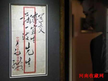 2013年11月24日,毛泽东亲笔致傅宜生(傅作义)、薄一波的手递公函封在中国嘉德2013秋季拍卖邮品钱币专场中以人民币6,555,000元成交。这也是毛泽东毛笔字迹首次上拍,该封为中国革命军事委员会公函封。