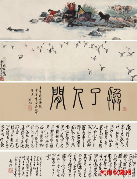 黄胄 金沙江畔 设色纸本 卷轴 19×224cm 成交价: 345万元