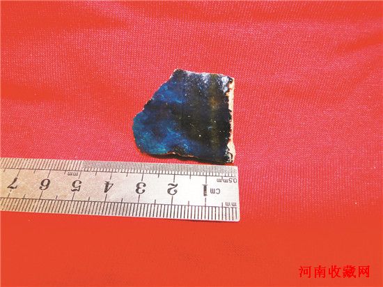这件高温蓝釉瓷片在我手中收藏已经很多年了,之所以说它奇特,是因为多年来,我请教过不少专家,也与一些藏友交流过看法,但都莫衷一是。我认为能把它搞明白,终归是一件有意义的事。